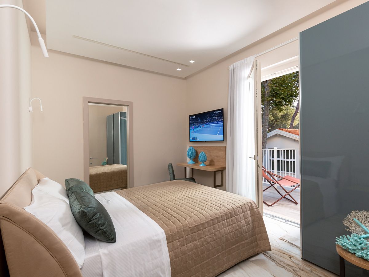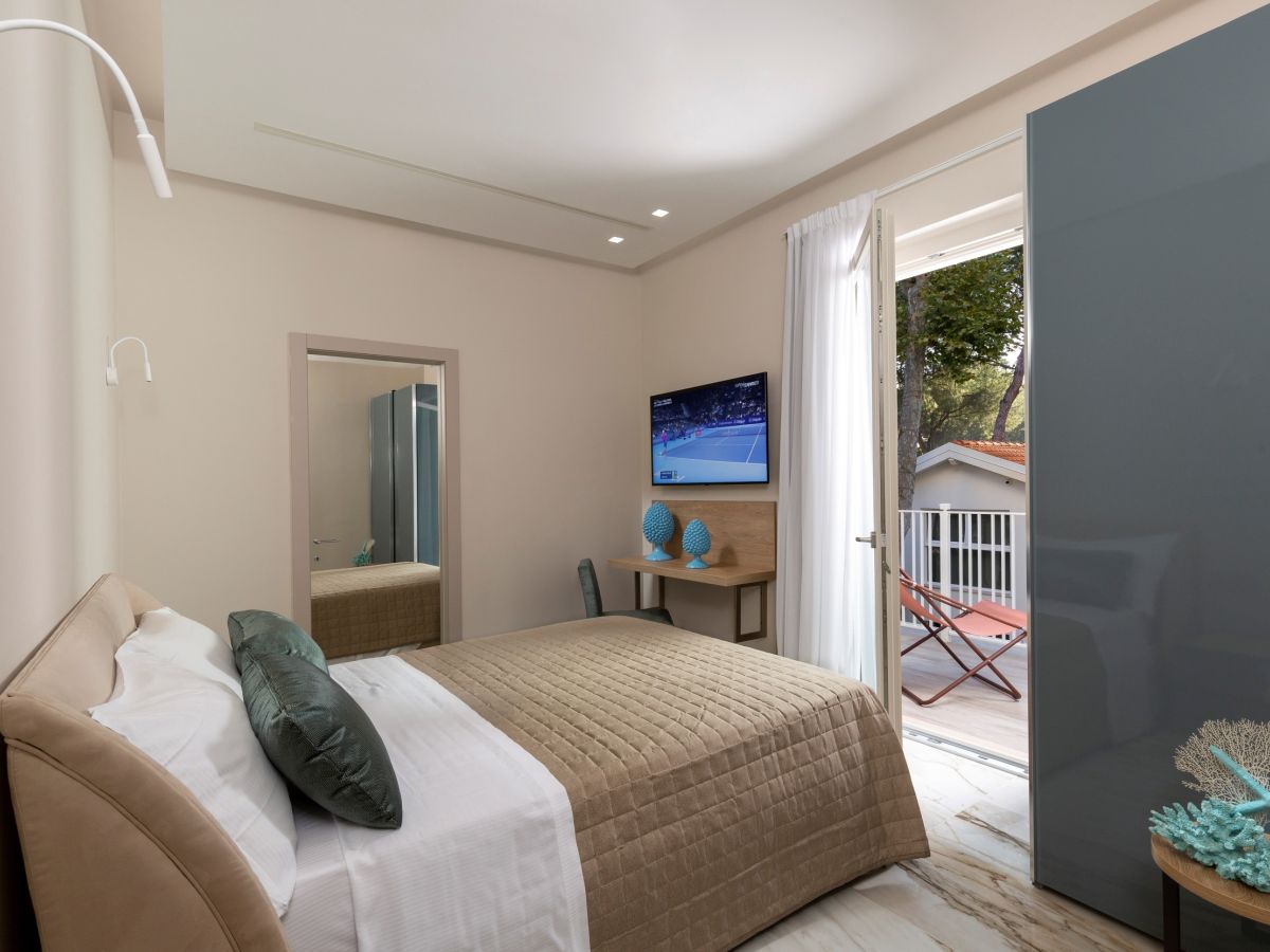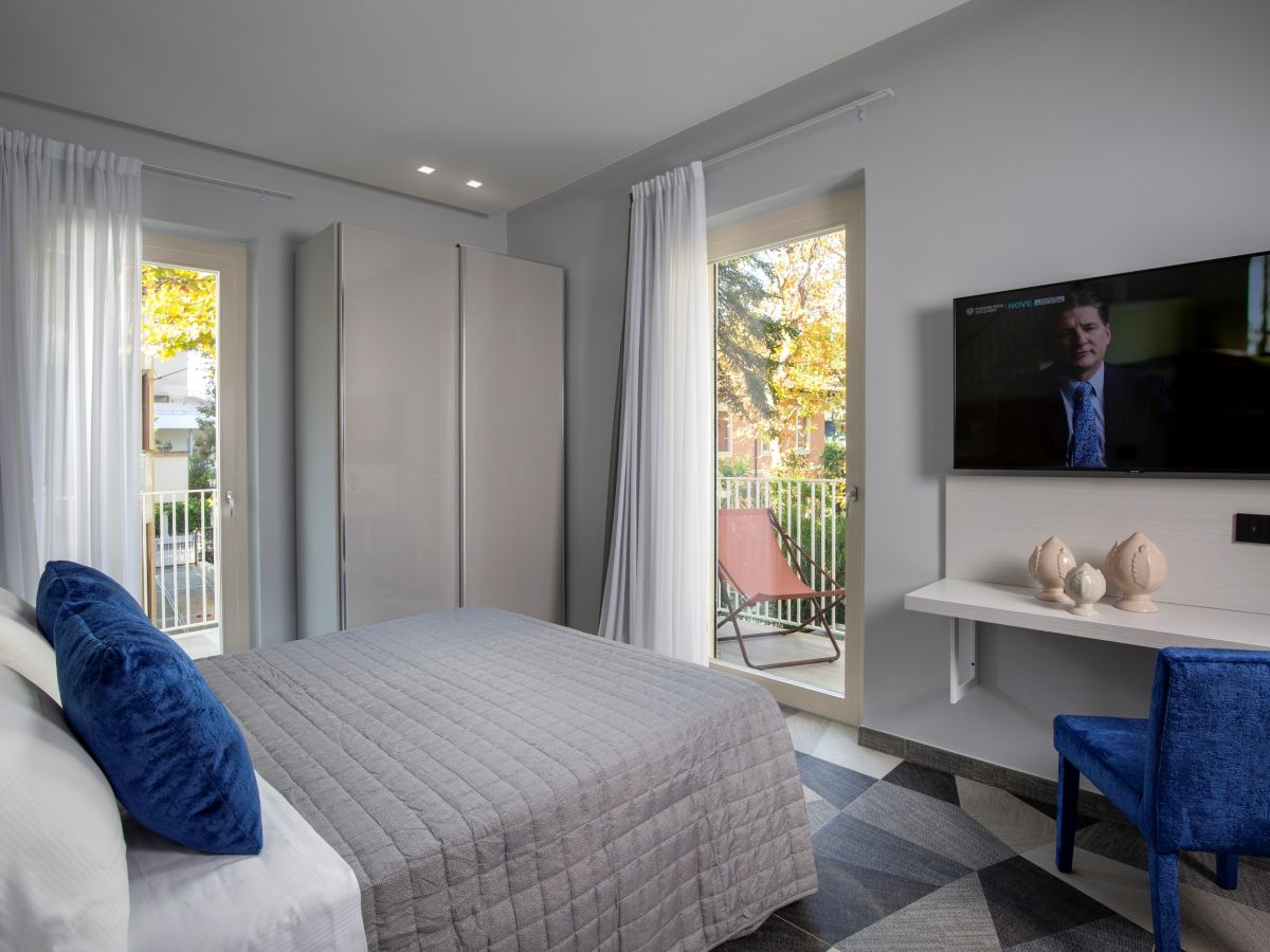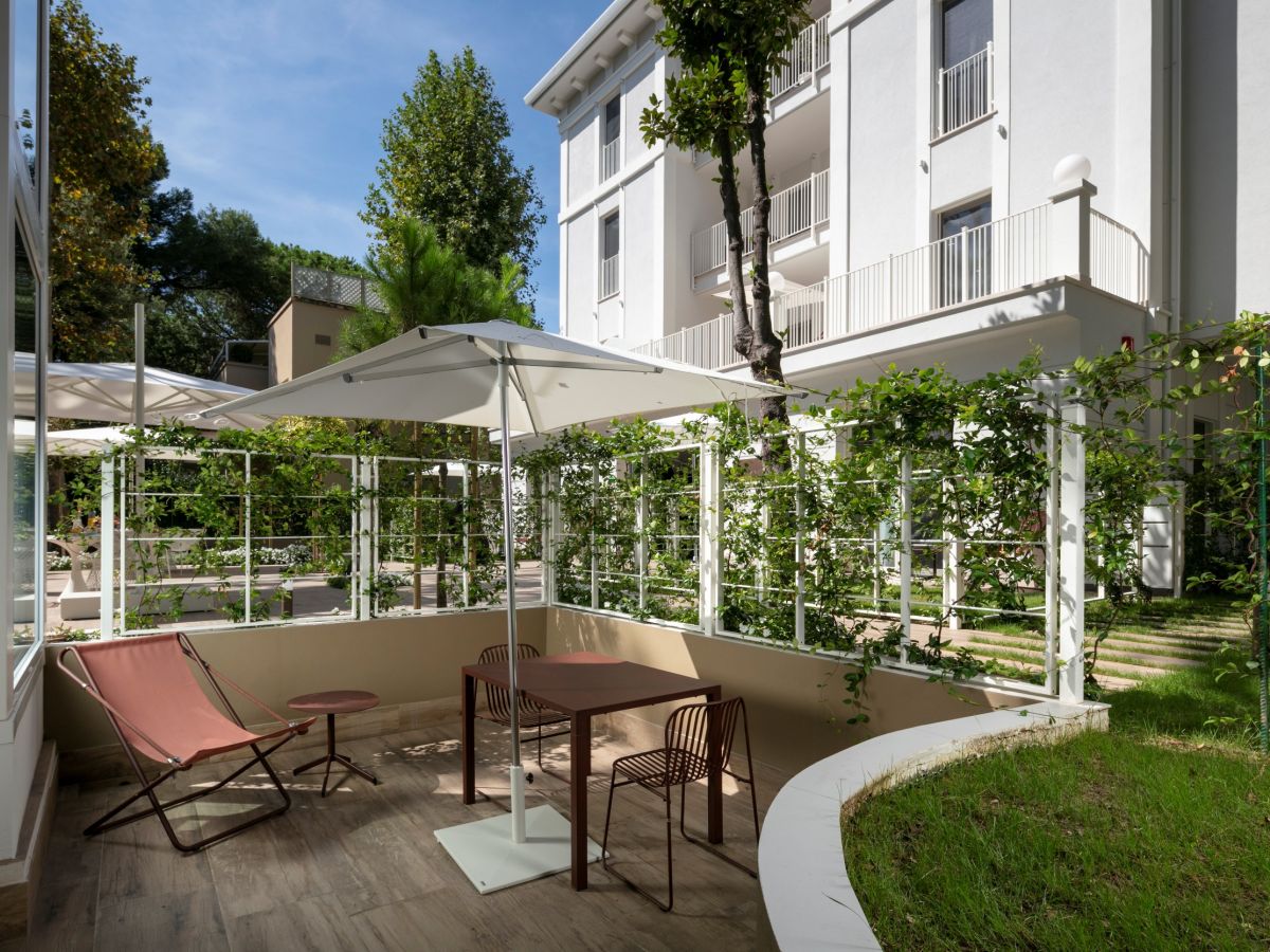 La struttura dispone inoltre di spazi comuni dal design ricercato: giardino arredato, vasca idromassaggio con lama d’acqua, reception e area bar. Servizi premium e attenzione ai dettagli rendono il Residence Elegance la scelta ideale per un soggiorno esclusivo a Riccione.