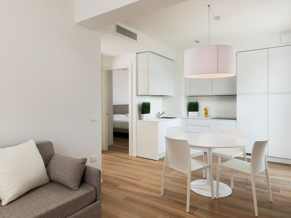 La struttura dispone di 13 appartamenti - monolocali, bilocali e trilocali - caratterizzati da ambienti ampi e moderni, dettagli eleganti, grande luminosità e colori caldi e avvolgenti. Gli arredi, dal design contemporaneo, sono realizzati con materiali di alta gamma; le dotazioni di ogni appartamento sono fra le più evolute e permettono un soggiorno senza pensieri.